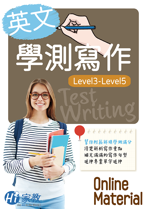 - 學測寫作班:以學測英文作文常見題型為核心,依照作文類型分類,每單元提供詳細解說及豐富練習機會,幫助你快速抓到考試脈動。
