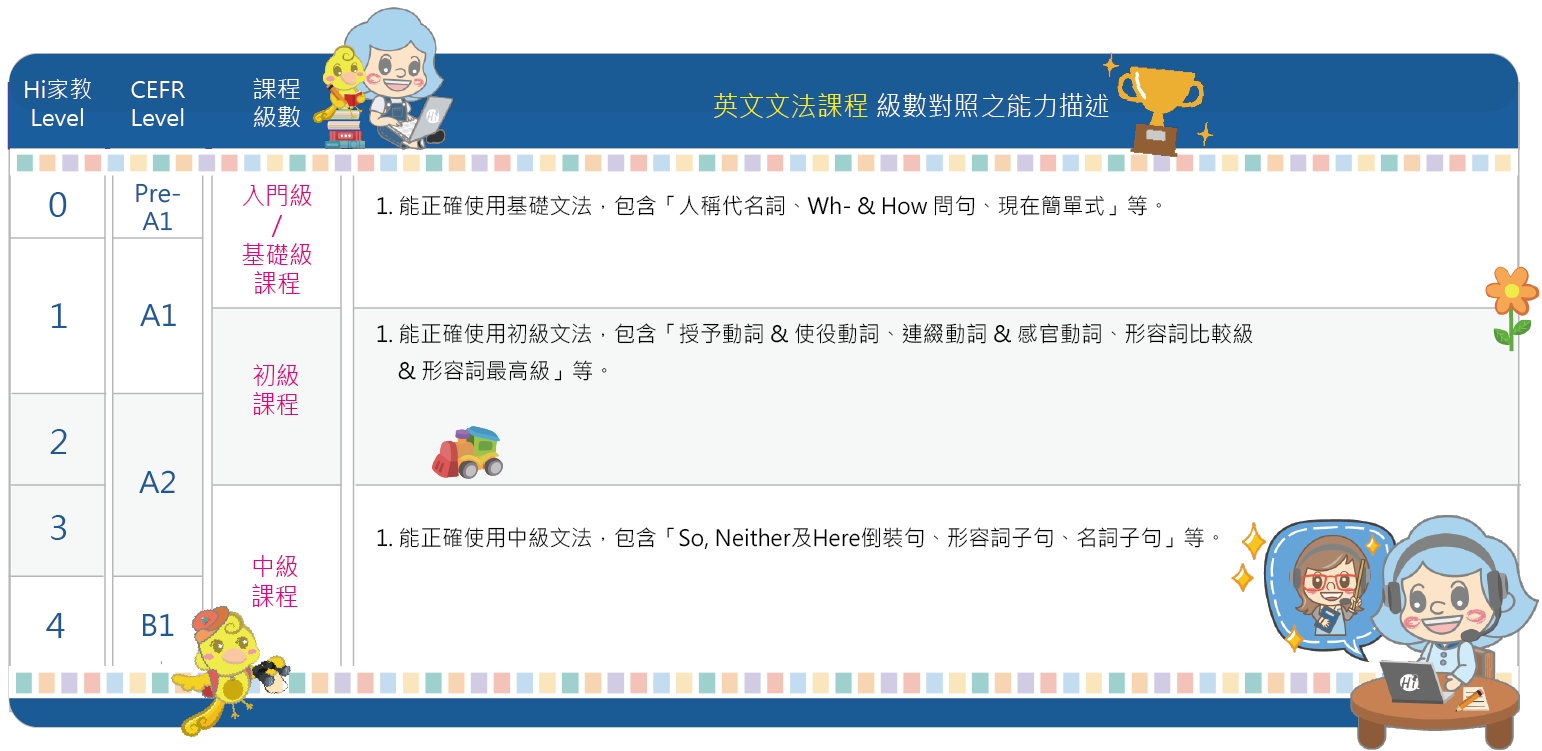 文法課程旨於協助學員習得常用文法知識,使其成為自信英語使用者