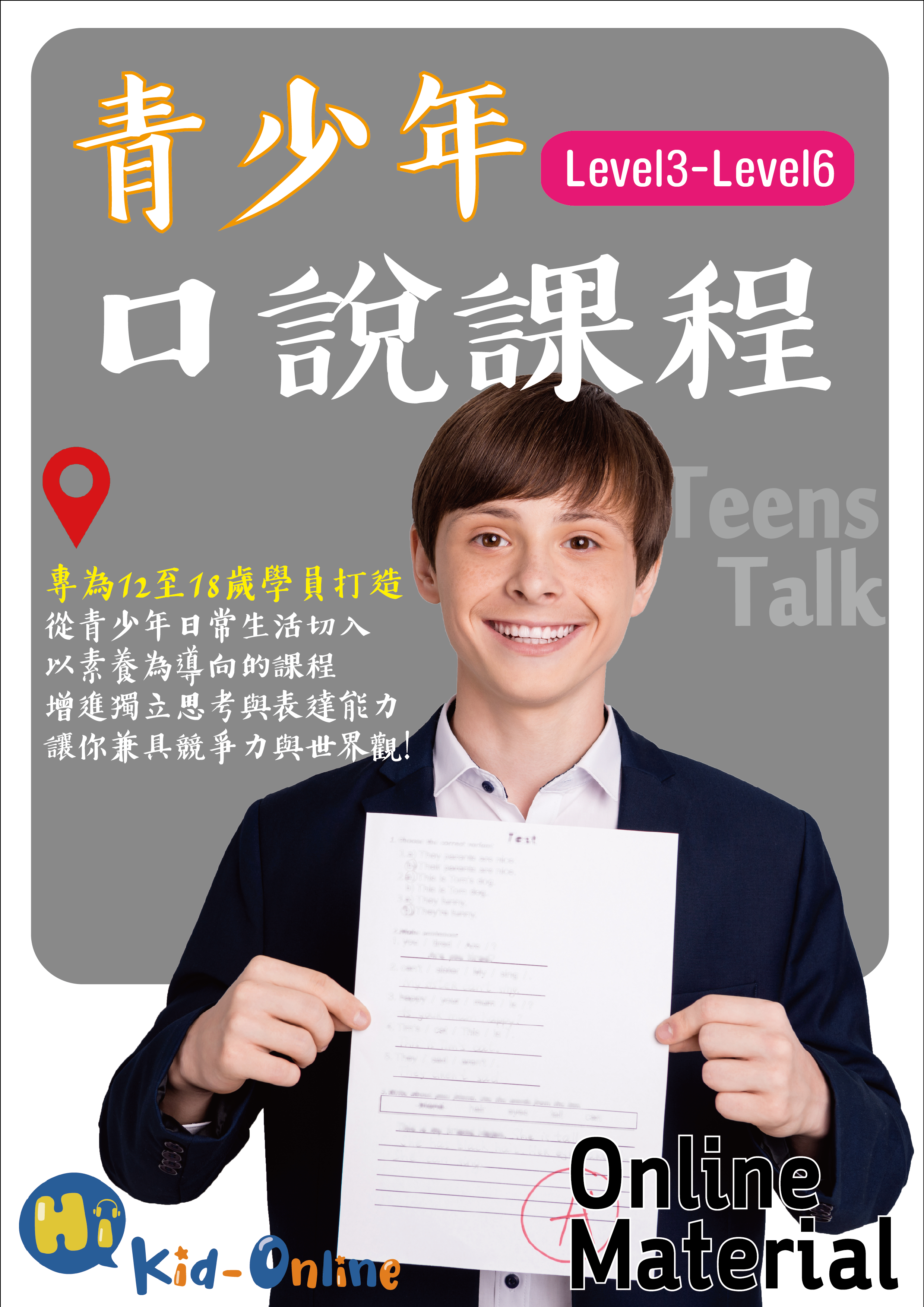 「Teens Talk - 青少年口說課程」以青少年日常生活為課程主題,以素養理念為架構導向,透過問題安排與老師引導,鼓勵青少年結合生活經驗思考並表達,一步步增進獨立思考與語言能力。